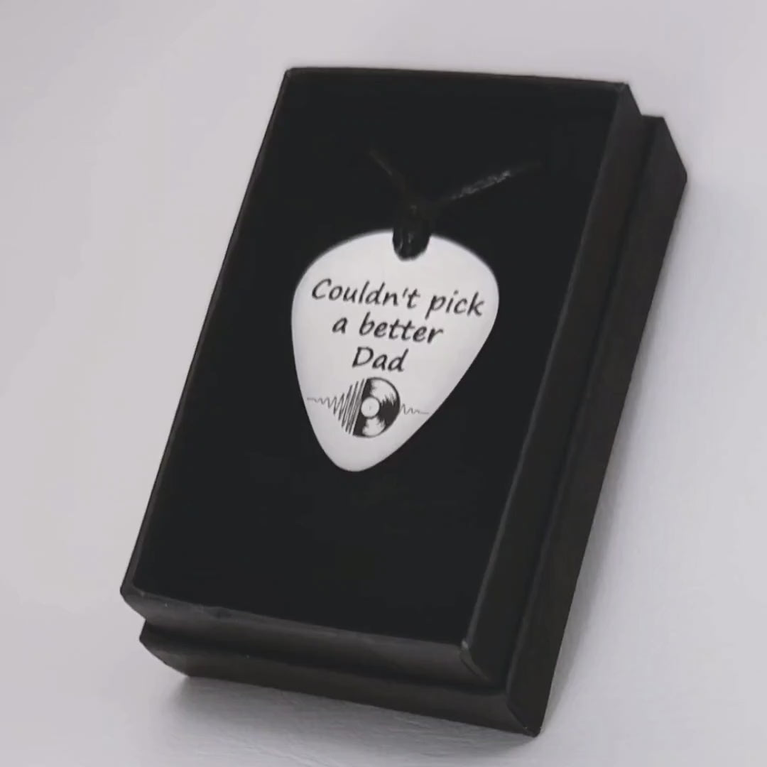 Guitar Pick Pendant - Engraved Stainless Steel - Couldn't pick a better Dad