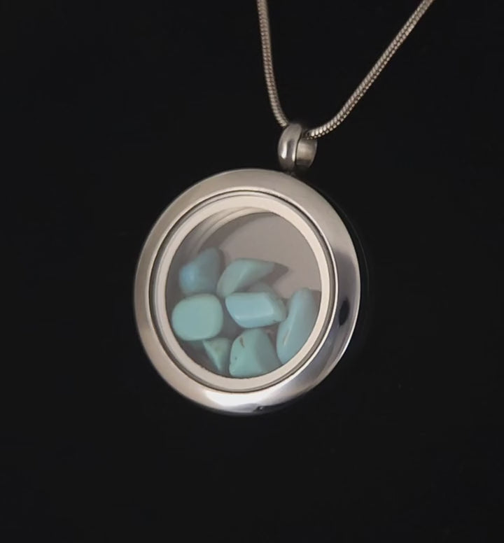 Turquoise Locket Pendant - 25mm Stainless Steel
